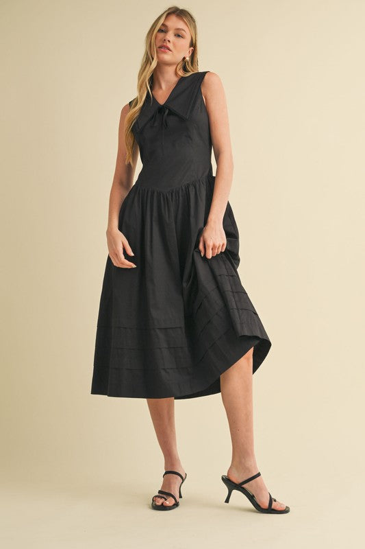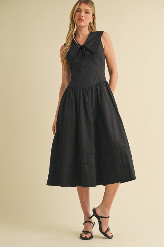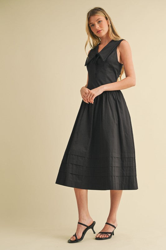 + Oversized doll collar neckline with lace trim and tying detail + Princess seam