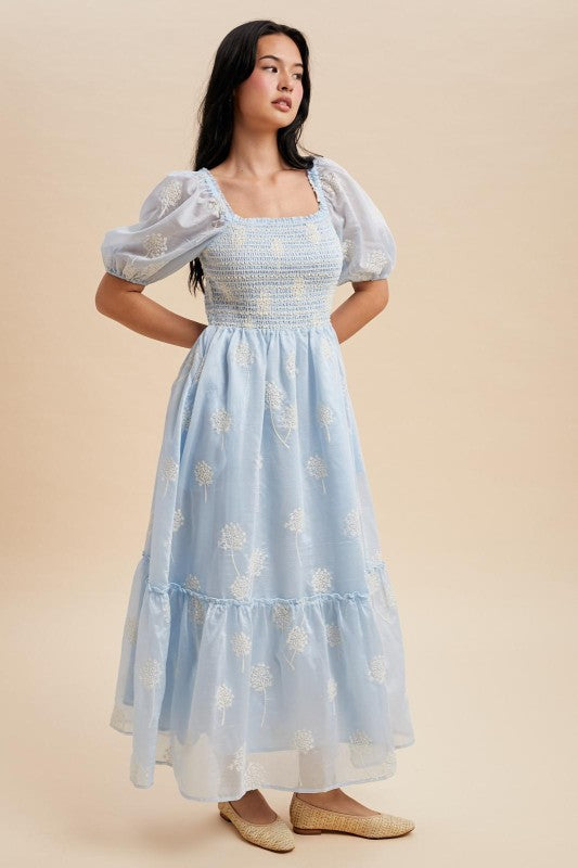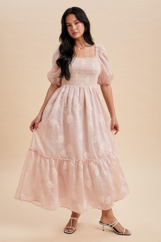 LOVELY SMOCKED MAXI DRESS FEATURES: |
