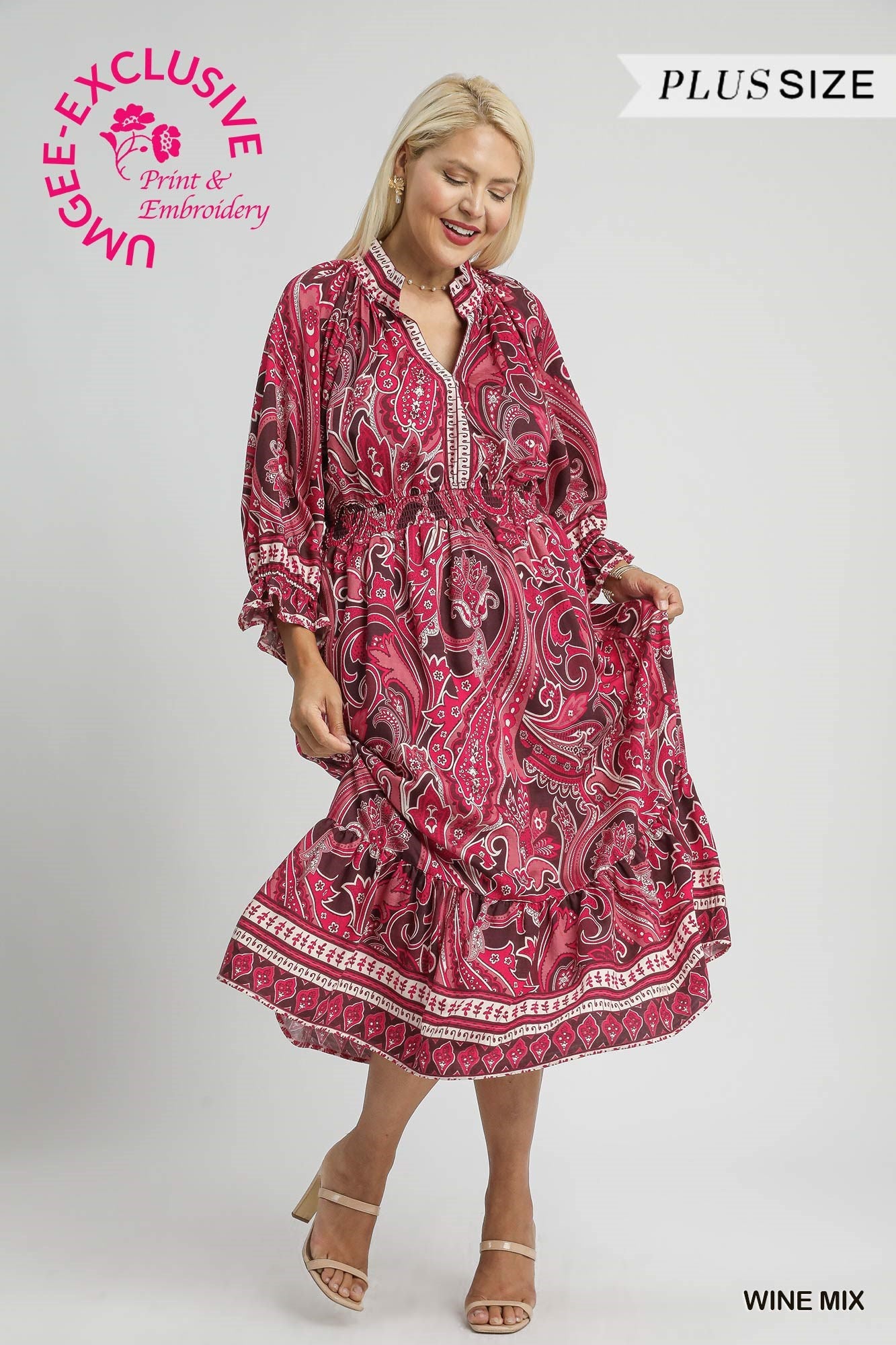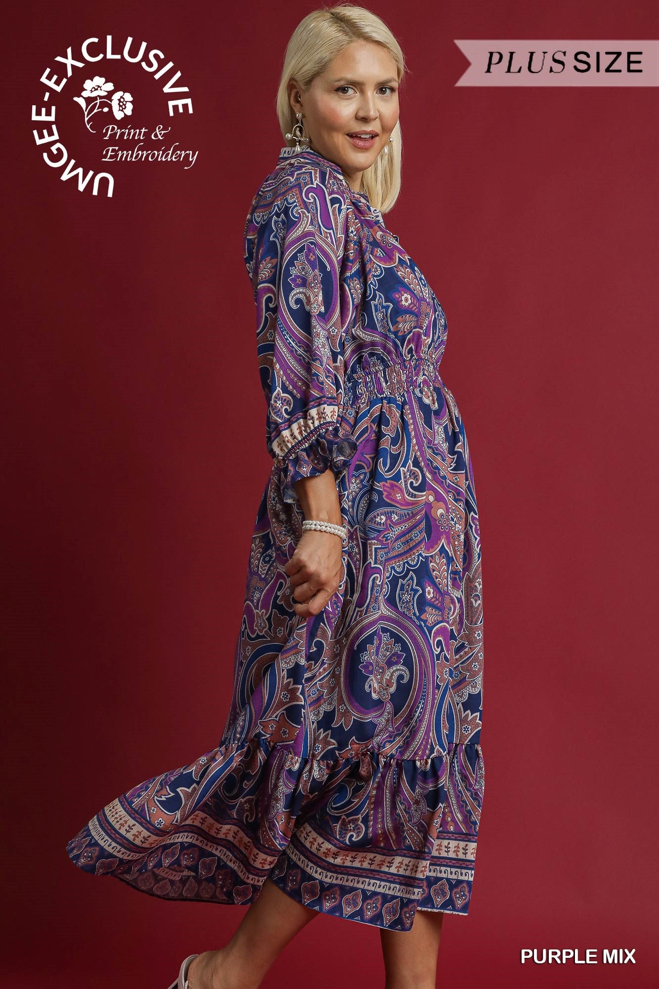 Paisley Print Midi Dress with Smocked Waist