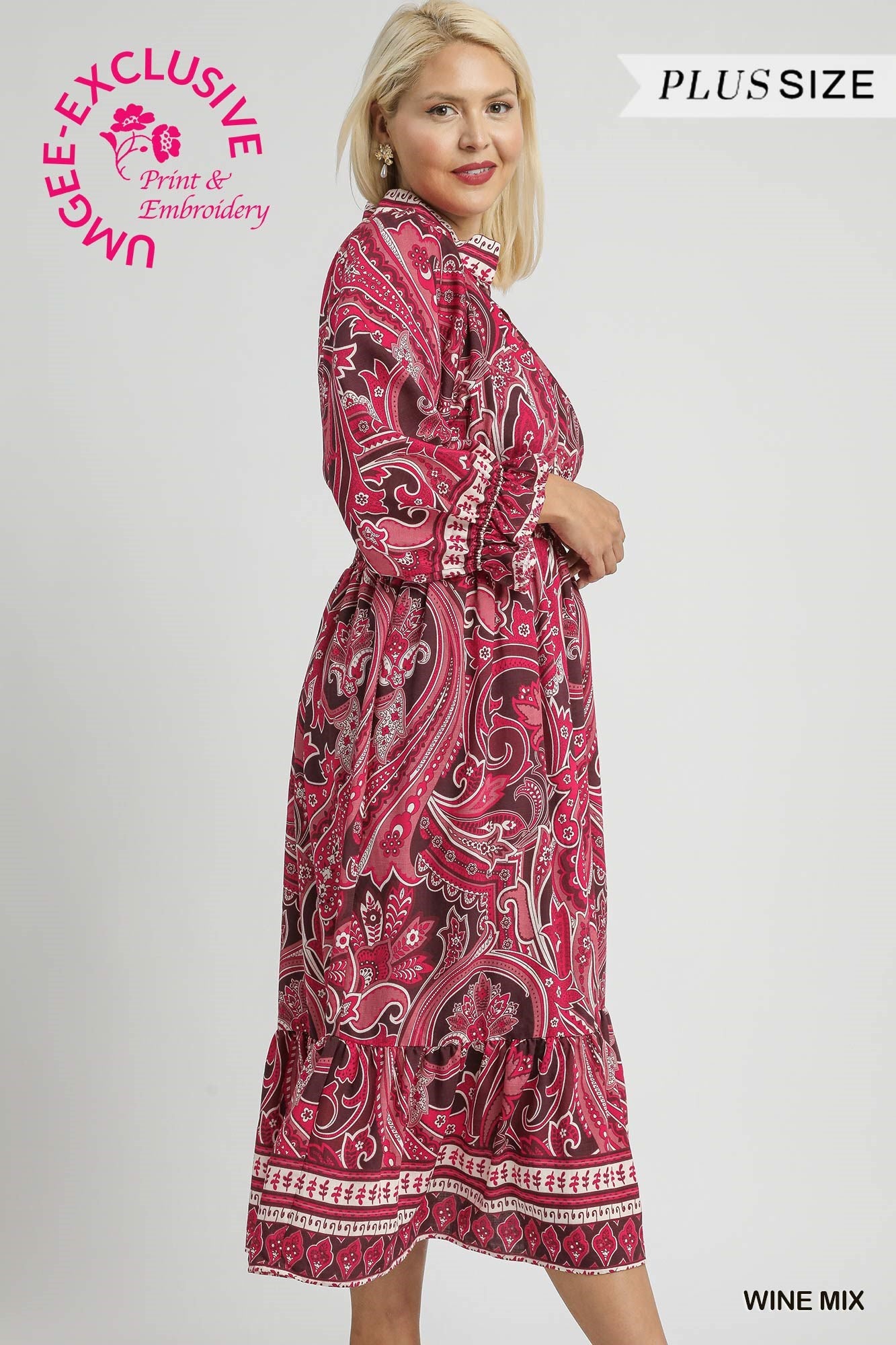 • Tiered midi length with border print trim
